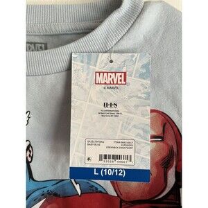 The product is a Marvel Boys Sweater featuring the popular characters Hulk, Spider-Man, and Captain America. Made of 70% cotton, this size L sweater is designed for boys ages 10-12. It showcases the iconic Marvel superheroes in a fun and stylish way, perfect for young fans of the franchise. The sweater is brand new with tags, making it a great addition to any young boy's wardrobe.