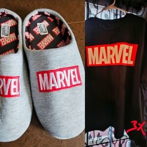 Marvel Slippers And Shirt Bundle Slippers 9-10M New Shirt 2XL Used