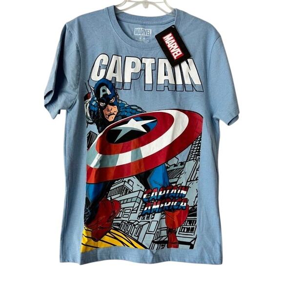 Marvel Captain America Graphic T-Shirt Blue Men’s Medium NWT Superhero Tee
