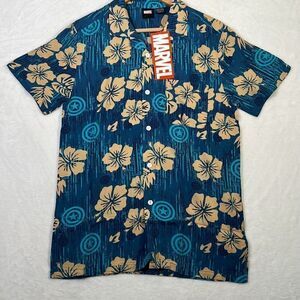 Marvel Men's Captain American Floral Button Up Hawaiian Shirt-Small-NWT