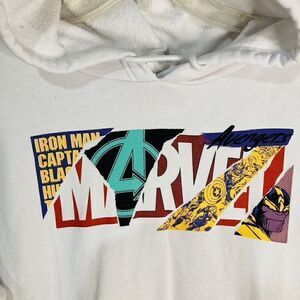 Marvel Characters White Pullover Fleece Hoodie Sweatshirt Size L