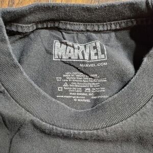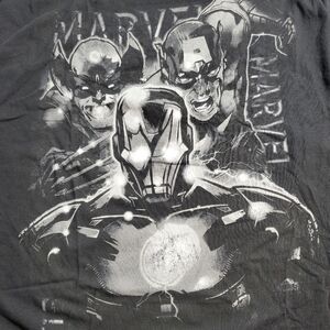 Marvel Comics Black, white tee T-shirt sz L Iron Man, Wolverine, Captain America