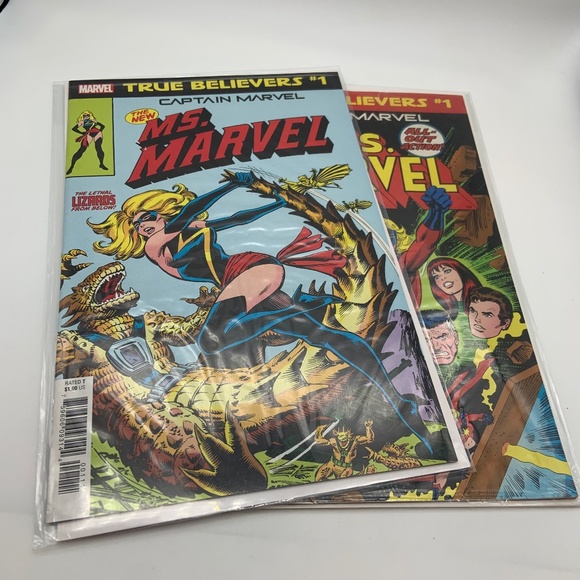 Dive into the Marvel universe with this captivating set of vintage comic books featuring Captain Marvel and Ms. Marvel! This collection includes two True Believers #1 issues that celebrate the dynamic characters and stories that have captivated fans for decades.
