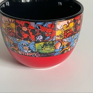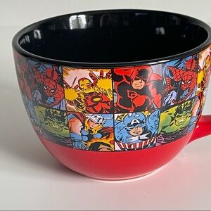 How many Marvel heroes can you identify in the artwork on this Marvel Comics Character Grid 24 oz. Ceramic Soup Mug? Safe to use in microwave and dishwasher. Measures 3 1/4-inches tall x 5-inches in diameter.