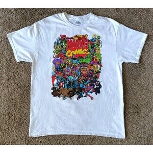 Marvel Comics T-Shirt Men's Large White Short Sleeve