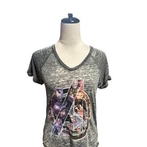 Show your love for Marvel with this Avengers burnout T-shirt. Featuring a gray tone with a bold Avengers graphic, this short-sleeve tee has a comfortable raglan style. Perfect for casual days or showing your fandom pride.