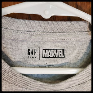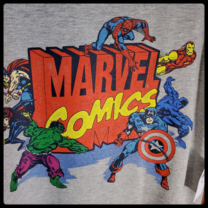 Words of heroes down back (Spider-Man, Iron Man, Captain America, Black Widow, Thor, Black Panther, Hulk, and Marvel Comics)