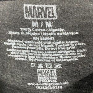 Men's black Marvel crew neck T-shirt. Deadpool on a unicorn with burritos and tacos flying by. Graphics have great color. Good overall pre-owned condition. No stains or flaws. Normal pre-owned wear. No pilling. Size medium. Could be unisex. See measurements below.