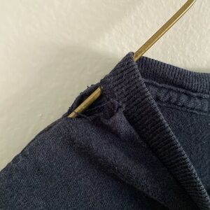Flaws: hole by neck- can be fixed, seam tear under sleeve- can be fixed