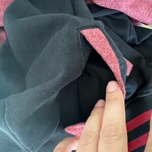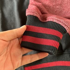 Color: Black body with red sleeves & striped trim