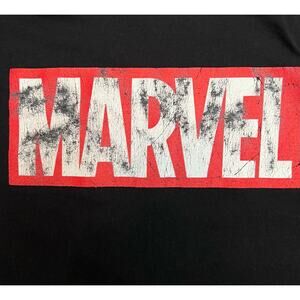 Marvel Distressed Red & White Logo Black T-Shirt Men Size Large Tall Graphic Tee