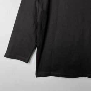 Marvel Fashions Believe Sparkle Santa Hat Christmas Graphic 3/4 Length Sleeve Tee Sz XL. This black stretch jersey round neck shirt boasts a "Believe" script decal on front in red and silver sparkle glitter.