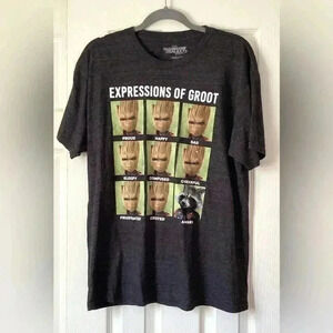 Marvel Guardians of the Galaxy Vol. 2 Baby Groot & Rocket T Shirt Size Large charcoal gray, green and Tan