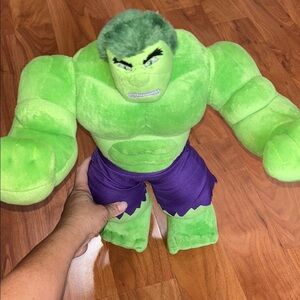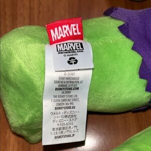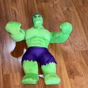 This plush toy captures the essence of the Hulk with its vibrant green and purple colors, making it a standout piece in any collection. Its oversized hands and feet, along with padded muscles, offer a comforting and huggable experience. Perfect for fans of Marvel, this stuffed animal is both a delightful toy and a cozy companion.