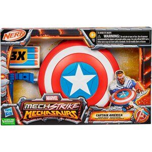 Marvel Mech Strike Mechasaur Captain America Nerf Blaster Shield Darts Wings Set