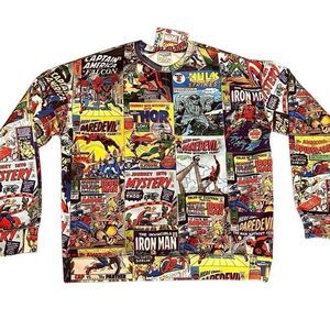 Marvel Men’s Sweatshirt All Over Print Comics Small (More Like Large) NEW w Tags