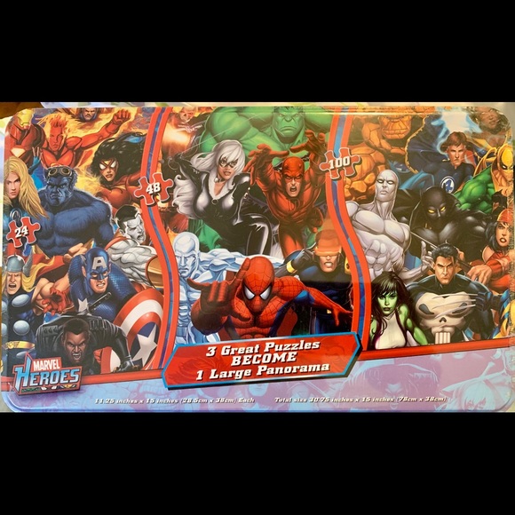 NWOT: Box contains 3 Marvel puzzles that become 1 large panorama.