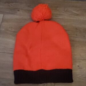 Marvel superhero beanie in red and black. Features iconic web design. Cozy and fun for kids. Some signs of wear.