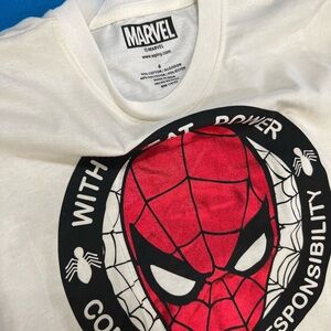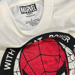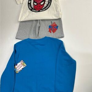 Transform into a superhero with this Marvel costume featuring a striking red and white design. The ensemble includes a bold Spider-Man logo on a white top, complemented by comfortable pants. Perfect for embodying your favorite superhero in style.