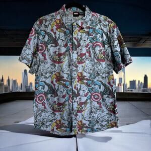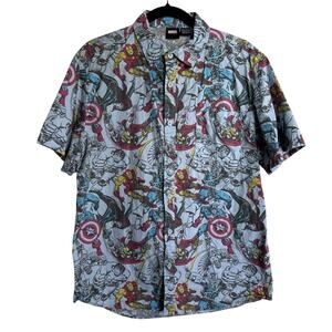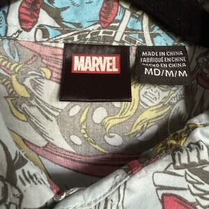 Marvel Size Medium Men's Button Down Shirt Short Sleeve Comic Book Thor Iron Man