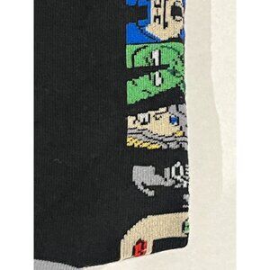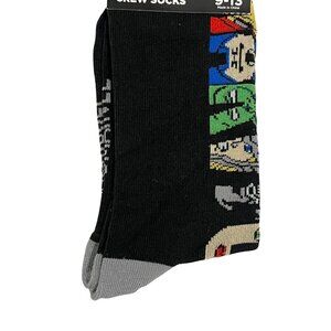 Show off your love for legendary heroes with these black crew socks featuring a colorful vertical lineup of classic superheroes. Perfect for comic book fans, collectors, or anyone who loves a bold pop culture statement. One pair, men's size 9–13. New with tags.