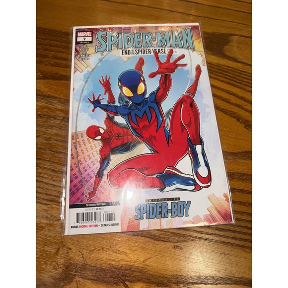 Keywords: Spider-Man comic, Spider-Boy, End of the Spider-Verse, Marvel Comics, comic book, superhero, graphic novel, collectible, issue 7, second printing, comic collection, reading material