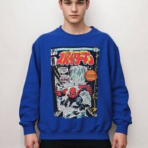 Marvel Spider-Man Blue Vintage Comic Graphic Sweatshirt Pullover Men’s Medium