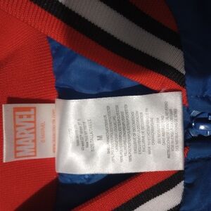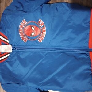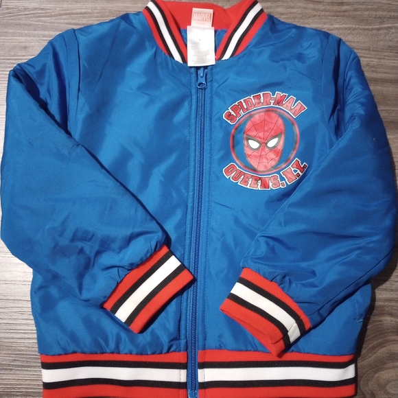 Stylish Spider-Man jacket with bold colors. Features iconic logo. Ideal for superhero fans.