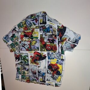 Keywords: Marvel, Spider-Man, Comic Book, Button Up Shirt, Short Sleeve, Menswear, XXL, Adult, Top, Geek, Nerd, Casual, Printed