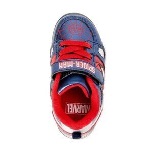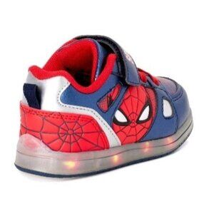 spider-man shoes, marvel shoes, toddler sneakers, hook and loop shoes, size 7 kids shoes, superhero shoes, kids casual shoes, rubber sole shoes, themed sneakers, kids light-up sneakers, boys spider-man shoes, spider-man light-up shoes, red and blue sneakers