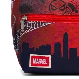 On the front, Spider-Man swings across the skyline, while the back showcases his amazing friends—Ghost-Spider and Spin—ready for adventure. Perfect for fans of the Spider-Man cartoon, this mini backpack is a colorful tribute to beloved characters like Miles Morales, Tom Holland, and Tobey Maguire’s Spider-Man. With a subtle nod to the iconic villain Venom, it brings together everything Marvel fans love.