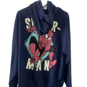 Marvel Spider-Man Navy Hoodie Sweatshirt L Mens Cotton Polyester