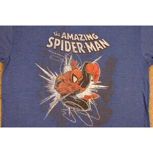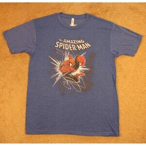 Marvel Spider-Man Vintage Comic Poster Graphic Tee T-Shirt (Large) Blue NWOT