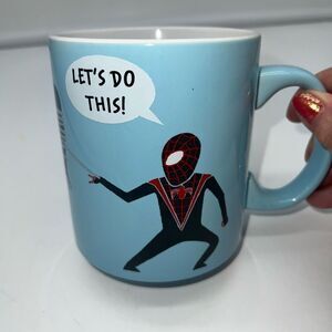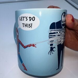 Anyway… Venom is tough. Peter Parker knows that, so he was smart enough to reach out to the greater Spider-Verse and bring his friend Miles Morales to the fight. In this case, on the outside of a nice jumbo coffee mug, perfect for coffee, hot chocolate, or untold other beverages and treats.