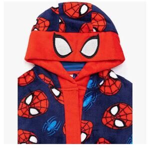 Marvel Spiderman Bath Robe Gown Boys Kids Superhero Blue Red Pajamas Comics 2/3
