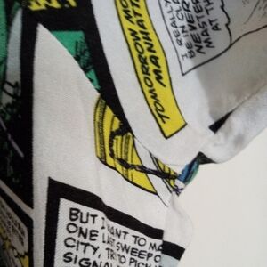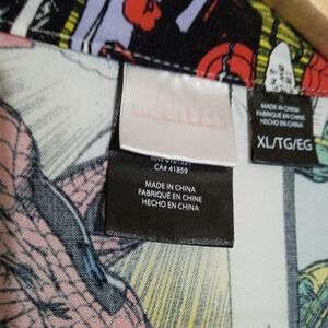 Marvel Spiderman Comic Strip short sleeve button down shirt Men's size XL. Very Good pre-owned condition with minor wash wear and one button is slightly off center. See 10th pic.