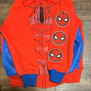 Dress up as Spider-Man with this gorgeous hoodie. It has a bold red and blue design. Perfect for playtime adventures. 2 front pockets to keep hands warm. Rarely worn. Size 4T.