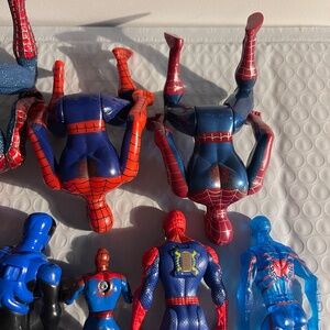 Marvel Spiderman & Other DC Comic Superhero Figures- 8 Total. they are all in excellent condition. They all measures between 4-5" tall except the one Die Cast Metal One , which measures 2 3/4" tall, which has a few tiny spots of paint missing.