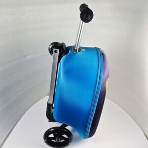 This fun ride on travel case doubles as a scooter and a carry on luggage piece. Made by Fast Forward New York, it features a durable molded hard shell, smooth rolling wheels, and an adjustable handlebar for easy control.