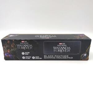 New in Box Marvel Studios Black Panther Wakanda Forever Gaming Desk Mat. Measures 31.5" x 11.8" x 0.8" when rolled out.