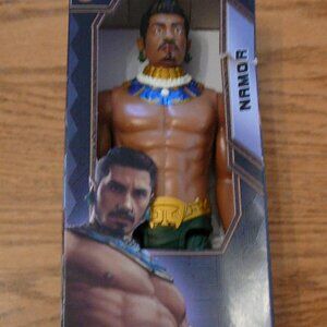 This action figure set features some of the most iconic characters from the Marvel Studios Black Panther movie, including Namor, Shuri, and Sunbird w/Shuri. The Wakanda Forever Titan Heroes are highly detailed and come with a variety of accessories, making them perfect for collectors and fans of the franchise. Whether you're a fan of action figures or just love the world of Marvel, this set is sure to impress. New in boxes. Boxes have a little damage but nothing significant.