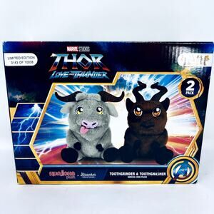 Marvel Studios Thor Love and Thunder Bleacher Creatures Thor Love & Thunder Limited Edition 3143 Kuricha Plush Stuffed Animal Pack for kids Toothgrinder & Toothgnasher Kuricha chibi plush Treasure Truck 2 pack Toy Collect Collectable Child Kid
