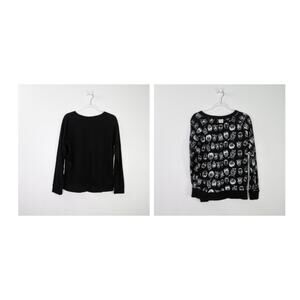Marvel Avengers Superhero Graphic Sweatshirt. Black Crewneck Sweater with Marvel Super Hero Characters. Reversible Sweatshirt with Spider-Man, Luke Cage, Hulk, Iron Man, Thor, Hawkeye, and Captain America.