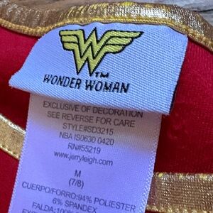 Transform into a superhero with this Marvel costume. Bold red top with iconic emblem. Sparkling blue skirt and gold accents. Perfect for playtime adventures.