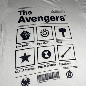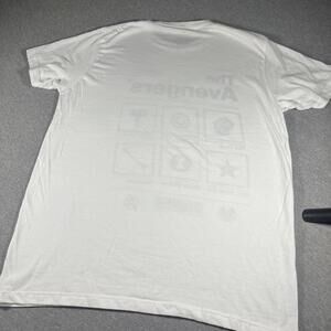 Men's Large white cotton T-shirt featuring The Avengers graphic print.