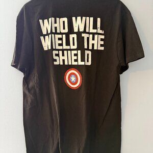 Official Hot Topic Marvel “The Falcon and The Winter Soldier” unisex T-shirt — brand new with tags! Features bold front graphics of the show’s logo and a back design that reads “Who Will Wield the Shield?” with Captain America’s iconic shield.