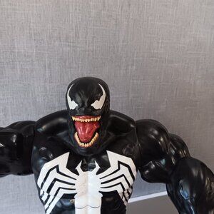 Up for sale is an incredible Disney Store Marvel 14-inch Talking Venom Figure. I think this is a really well made and detailed figure which is a must-have for any serious Marvel collector or fan of the iconic symbiote. This large-scale figure captures Venom's menacing presence with fantastic detail and talks when you press a button. It has movable arms and legs and that awesome creepy voice that really brings a realism to the villain. Perfect for display or imaginative play, this talking Venom figure is a unique addition to any collection. This figure has been used with a few scuffs here and there but nothing horrible. He's big and heavy! It weighs over 2 pounds and measures about 14 inches tall by 11 inches wide. Thanks for looking!