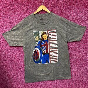 Marvel What If Captain Carter Gray T-Shirt XL. Generally measures 22 inches Width ( pit to pit) and 31 inches Long/ Length. Amazing shirt, perfect for Marvel fans. New never worn overstock in great condition