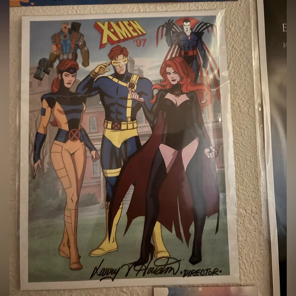 Vibrant X-Men '97 poster featuring Cyclops and Jean Grey. Autographed by Larry Houston. Open to offers!!
