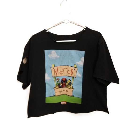Marvel cropped women's small black tank top. 1 mil a merc. Spiderman.